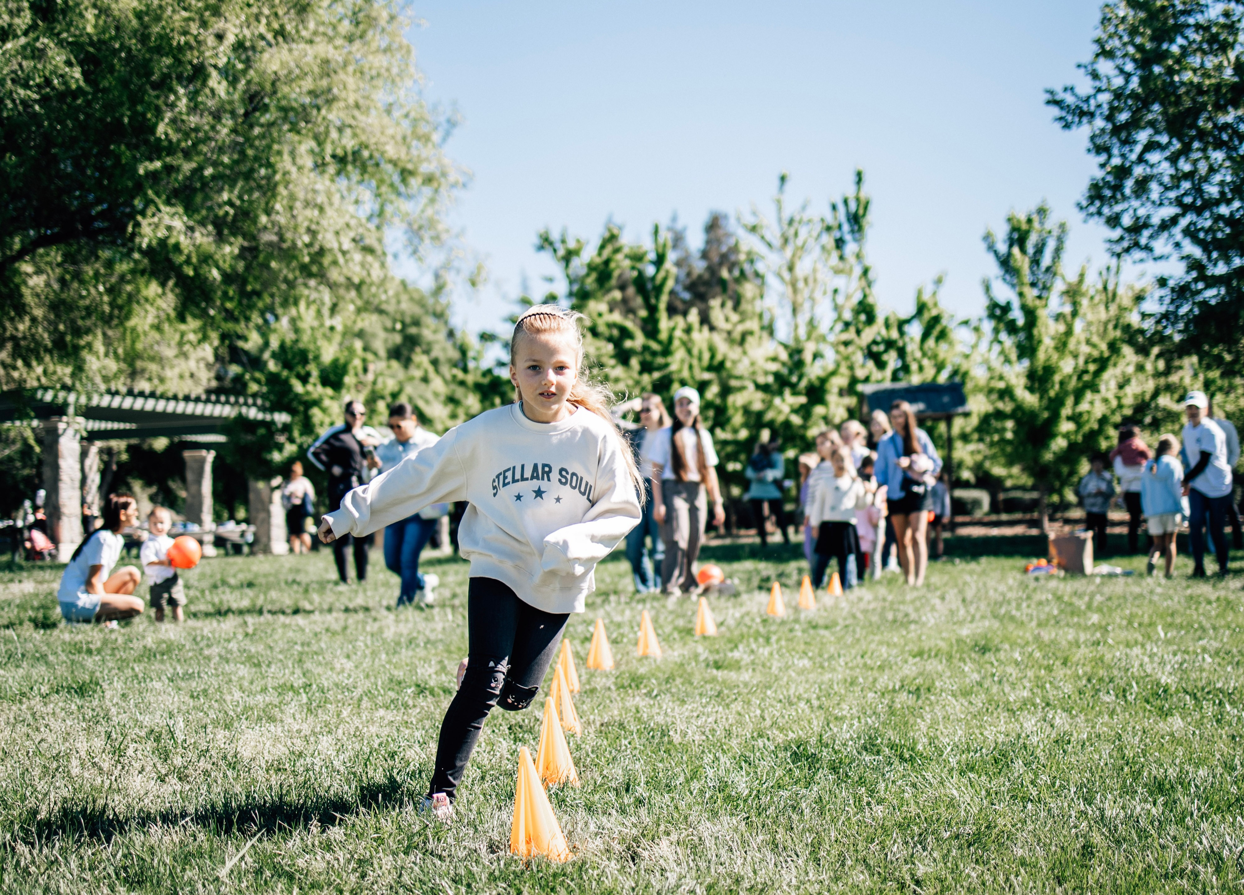 The event took place outdoors in a green park setting, where children had the opportunity to enjoy fresh air, open space, and a welcoming community atmosphere. From the very beginning, the park was filled with laughter, excitement, and the energy of children eager to take part in the activities prepared for them.